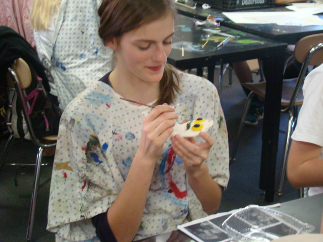 Apex HS Art continues our attempted at collaborating with the kindergarten class at the Moline School District in Illinois. They drew monsters. Now, our Art One class at Apex has recreated them in 3D. Meanwhile, the Computer Art class is creating package designs.